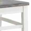 Styling details include plank effect farmhouse top with breadbox veneer pattern, picture frame table apron, schoolhouse chair with scoop seat for comfort and stretchers with a tapered leg for strength and support