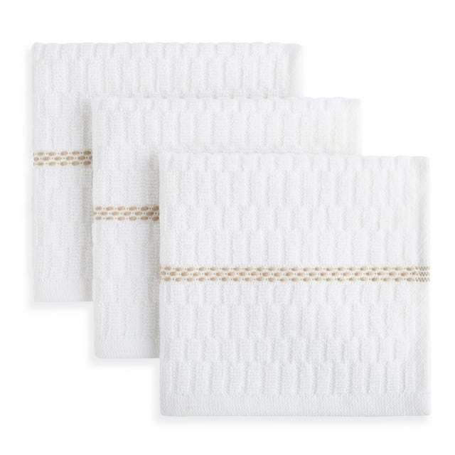 Includes 3 dish cloths Durable and long lasting Measures 12"W x 12"L 100% Cotton Easy care, machine washable