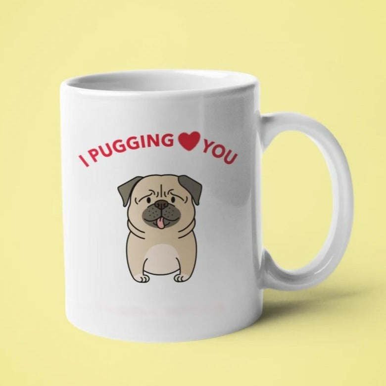 I Pugging Love You Mug. Perfect for coffee, tea and hot chocolate, this classic shape white, durable ceramic mug.