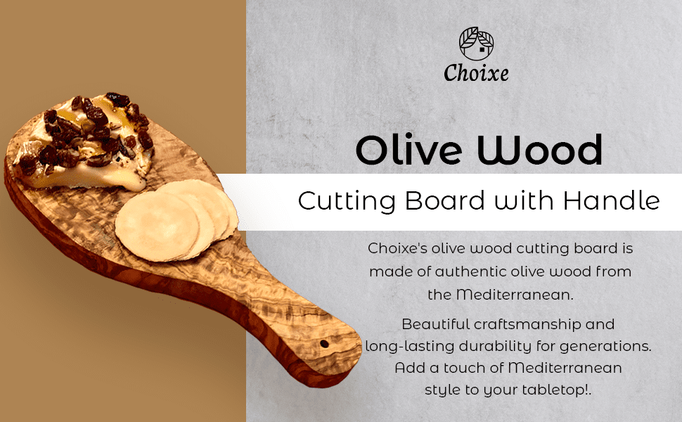This exceptional piece of craftsmanship will become your favorite accessory in your kitchen for every occasion. Choixe's olive wood cutting board is made of authentic olive wood from the Mediterranean. The stunning natural patterning of olive wood and unique craftsmanship make a stunning multi-functional cutting board unique to any tabletop.