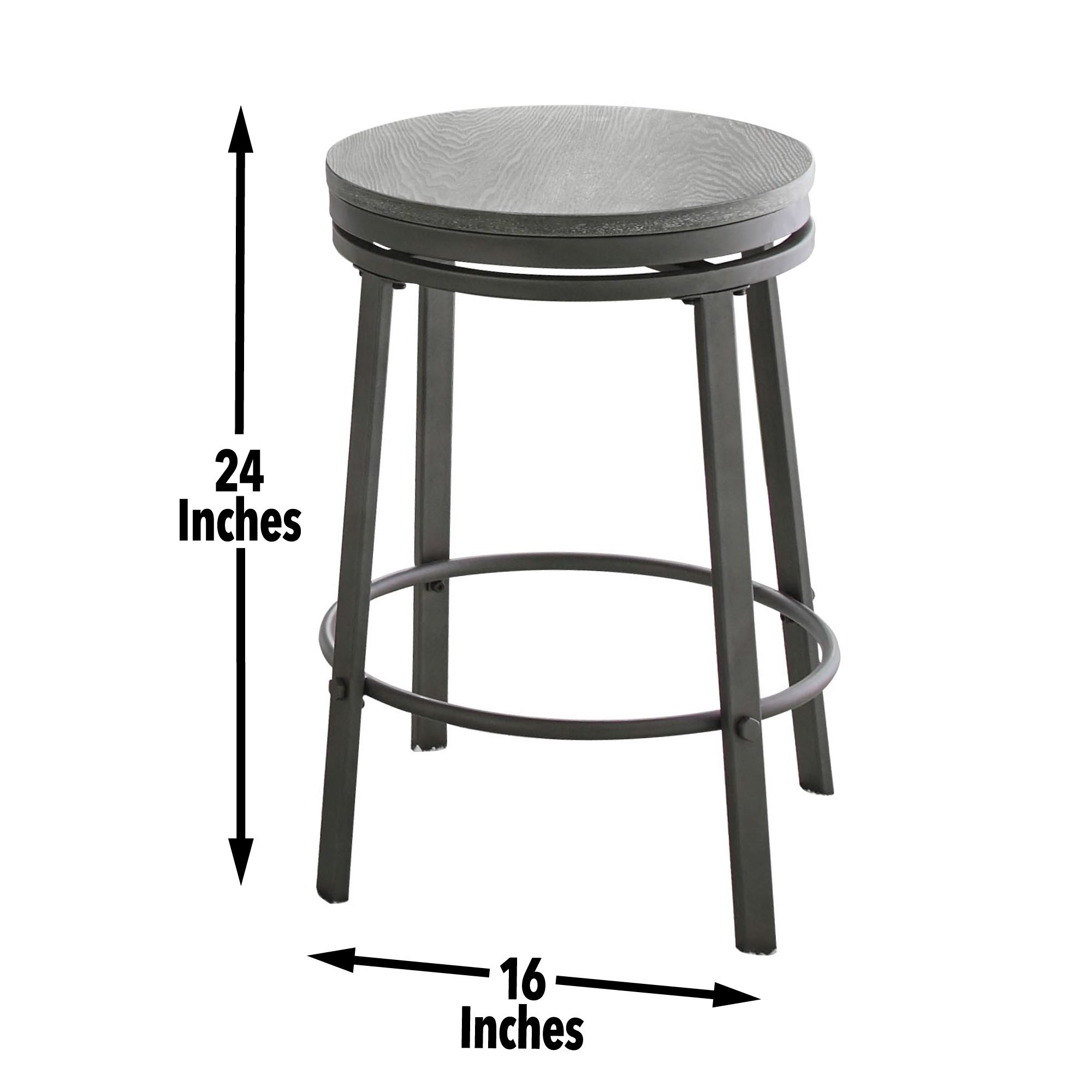Swivel counter stools feature stretchers for strength and comfort and a casual wood seat
