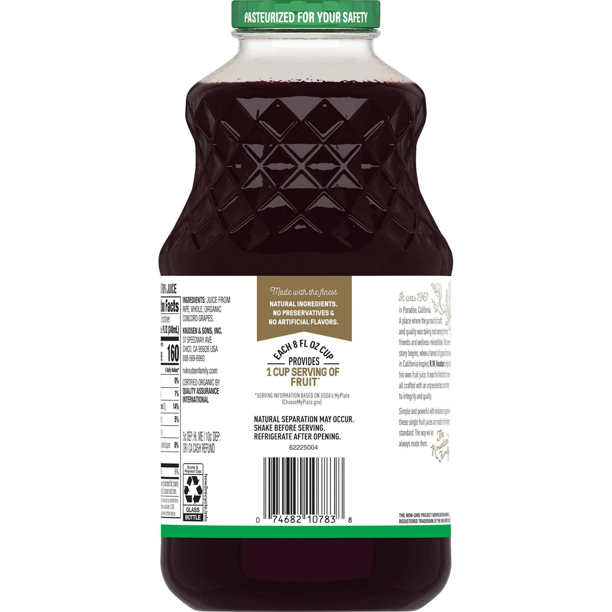 Live life to the fullest with R.W. Knudsen Family Organic Just Concord Grape Juice. Organic juice made with meaning, Just Concord Grape Juice starts with delicious Concord grapes and is USDA-certified organic and Non-GMO Project verified, resulting in a functional beverage you can trust. With no added sugar, this 100% juice has a sweet, slightly tart flavor that inspires creativity and helps you step up your drink game. Add organic grape juice to your favorite smoothies, cocktails and mocktails. Or simply enjoy the organic grape juice on the rocks for a meaningful break in your day. The Concord grapes used to make this organic juice aren’t only full of flavor, but they’re also naturally full of polyphenols, which help promote heart and cardiovascular health. Concord grapes, like the ones in this grape drink, can also help promote recovery after a tough workout. Each eight-fluid-ounce serving of this fruit drink conveniently provides a one-cup serving of fruit with no preservatives or artificial flavors. Shake well before serving and refrigerate after opening. Savor the refreshing goodness of 100% juice focused on flavor, function and farming with R.W. Knudsen Family Organic Just Concord Grape Juice. Never settle with R.W. Knudsen Family.