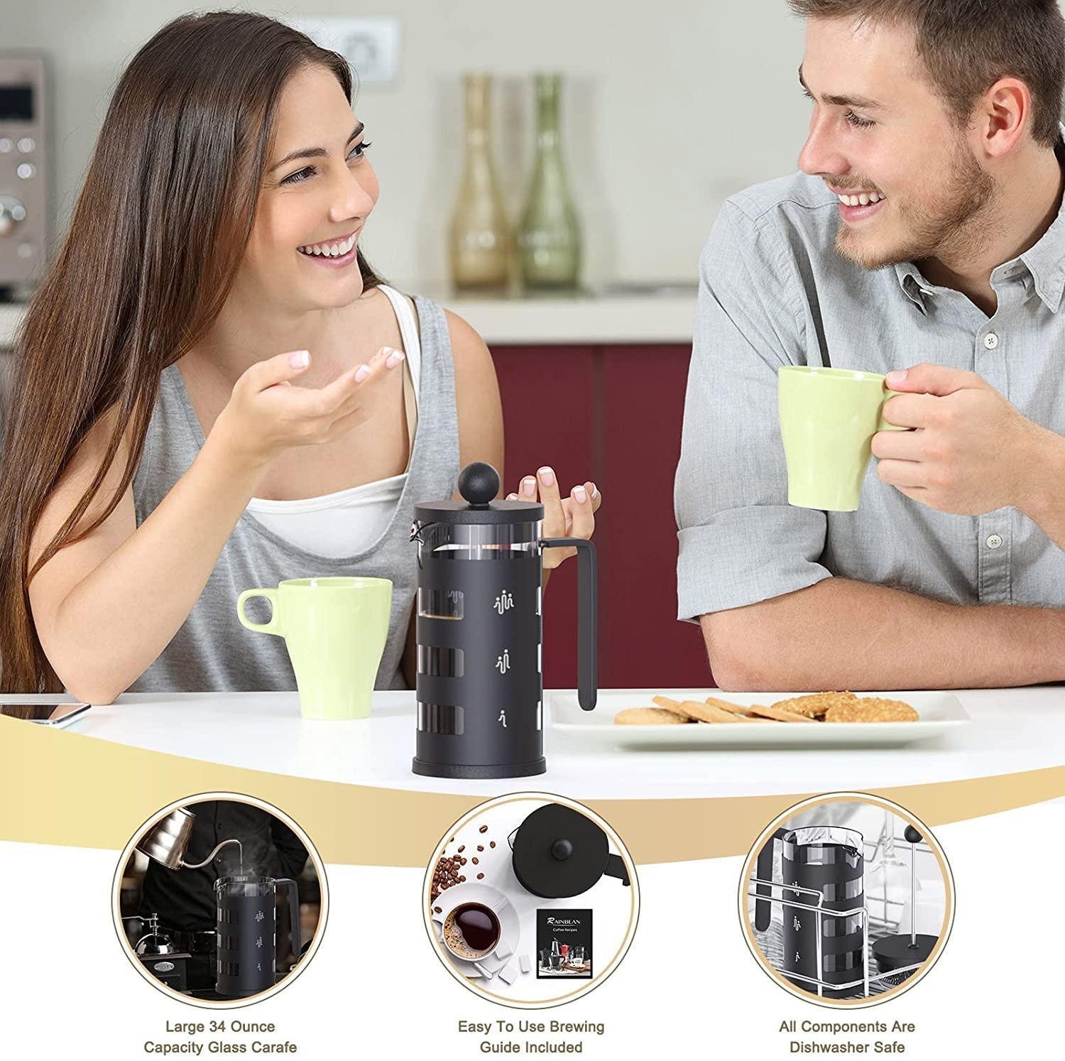 In addition; please confirm the size you want before buying. This product is a " small french press"; its size is "4.5 x 3.5 x 7 inches "; suitable for the daily use of 1 or 2 people.