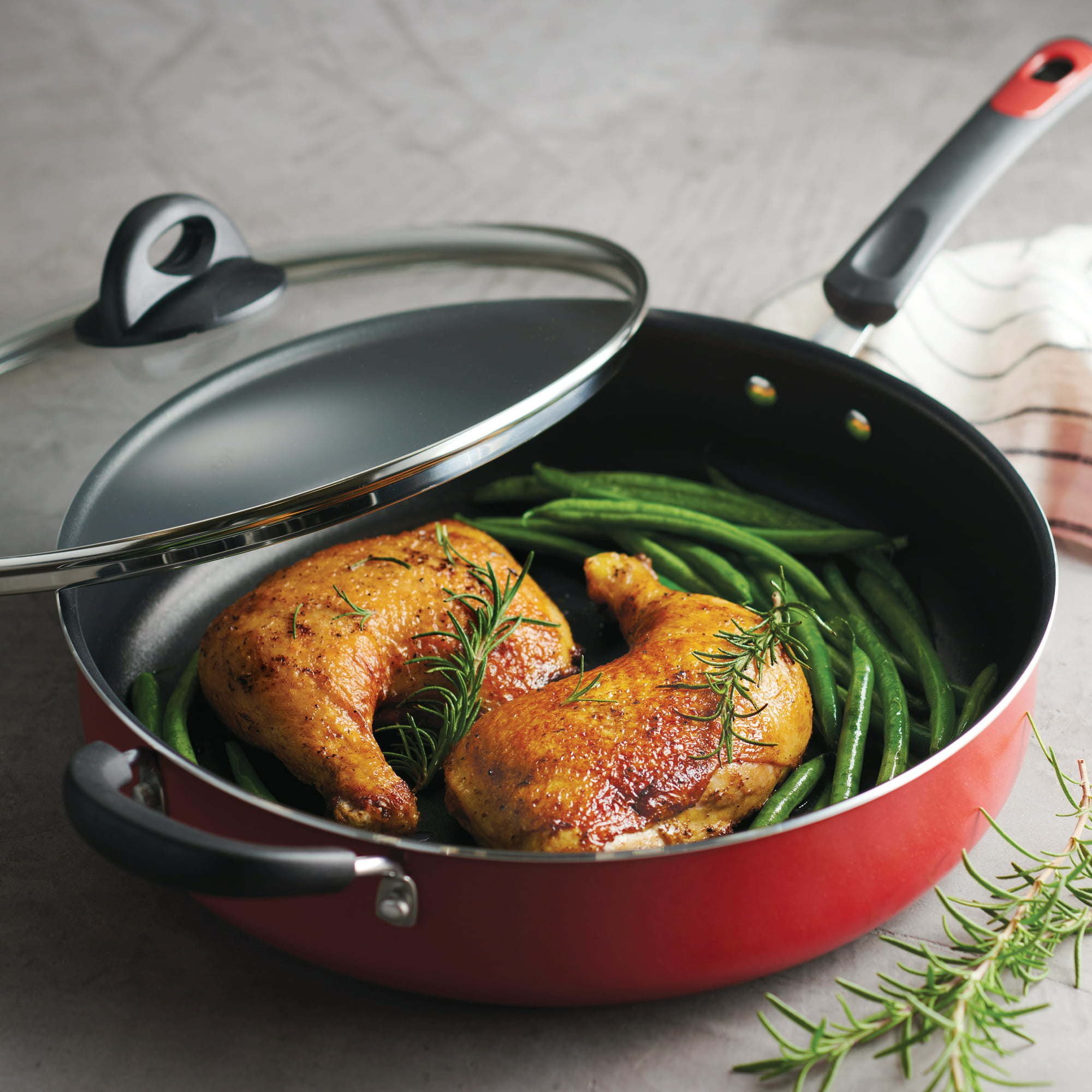 Rediscover the one-pot meal with Tramontina’s EveryDay 5 Qt Aluminum Nonstick Covered Jumbo Cooker in an eye-catching metallic red finish. You’ll prepare your best braised meats, hearty casseroles, and much more thanks to the pot’s nonstick coating that is made without PFOA, lead, or cadmium. A heat- and shatter-resistant tempered glass lid with stainless steel rim lets you keep an eye on your cooking progress and locks in all those savory mouth-watering flavors for a dish that’s sure to please, while sturdy, comfortable handles make it easy to manage. Compatible with gas, electric and ceramic glass cooktops, and dishwasher safe, Tramontina’s EveryDay 5 Qt Aluminum Nonstick Covered Jumbo Cooker comes with a 5-year limited warranty. Made in Brazil.